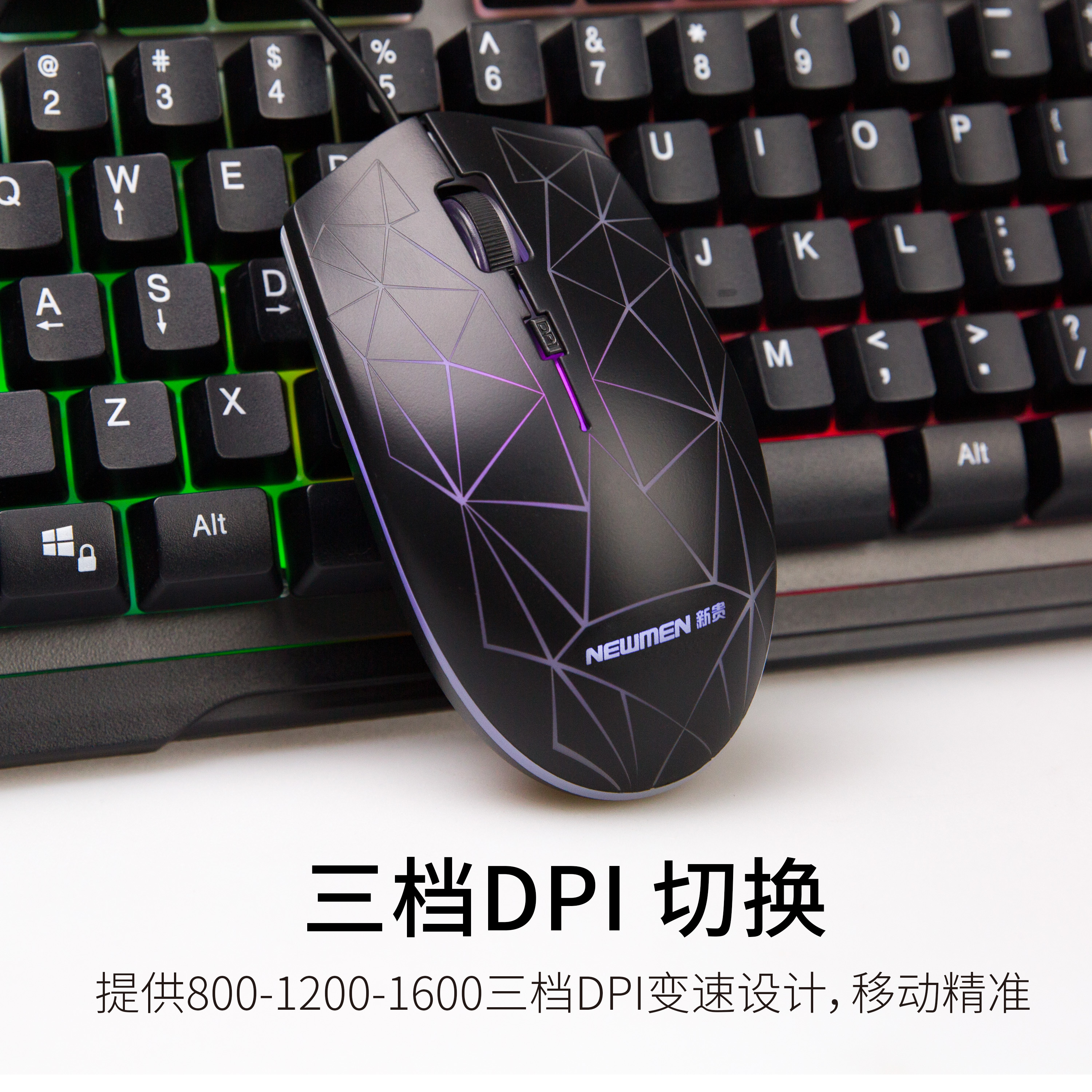 提供800-1200-1600三档DPI变速设计,移动精准