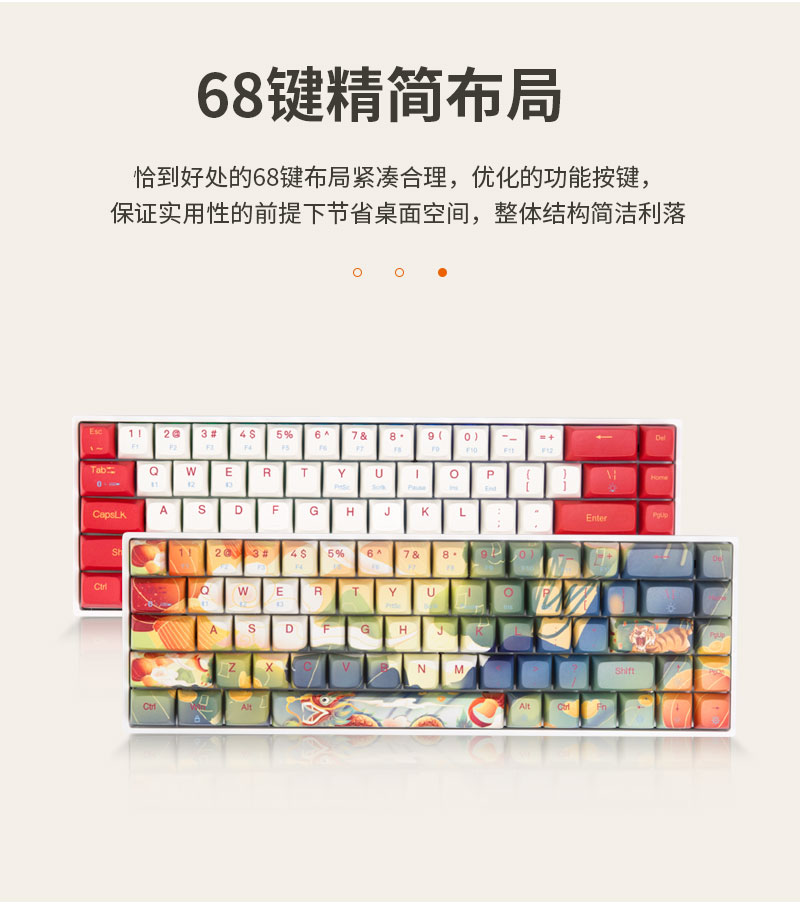 恰到好处的68键布局紧凑合理,整体结构简洁利落。