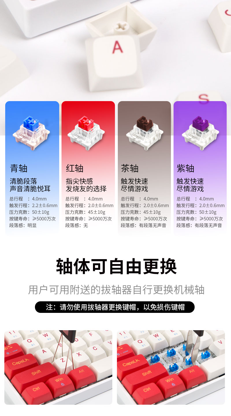 具有青、红、茶、紫四种轴体可自由选择